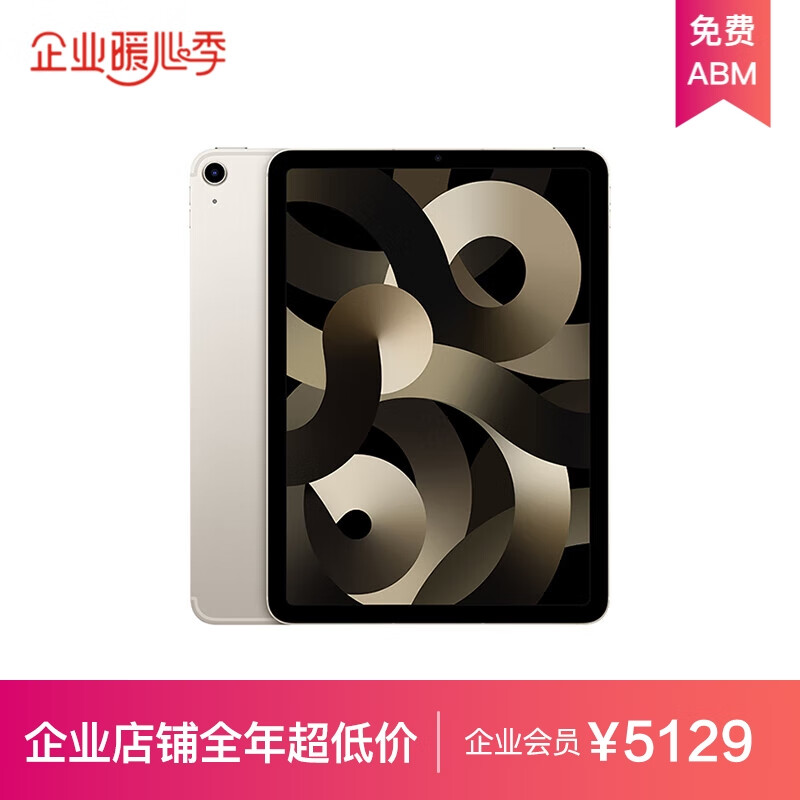 Apple iPad Air 10.9英寸平板电脑 2022年款(64G WLAN+Cellular版/M1芯片 MM783CH/A)星光色*企业专享价格:5999.00元!