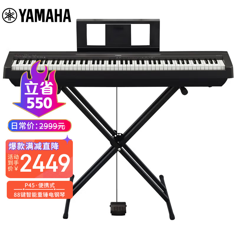 雅马哈(YAMAHA)P45 电钢琴 88键重锤键盘 数码电子钢琴官方标配+X型支架价格:2999.00元!