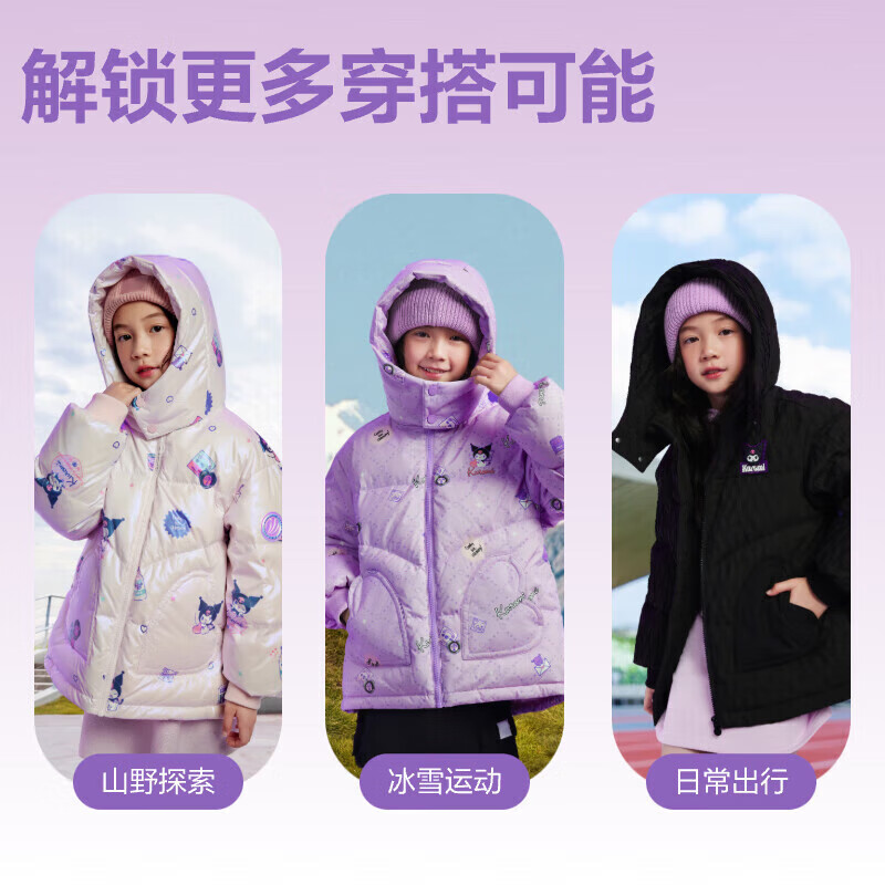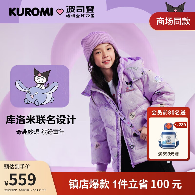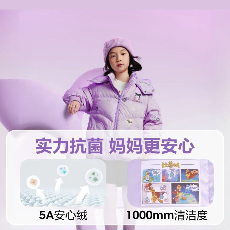 波司登库洛米2023儿童羽绒服90绒5A抗菌女童可爱连帽保暖外套T30143752价格:659.00元!