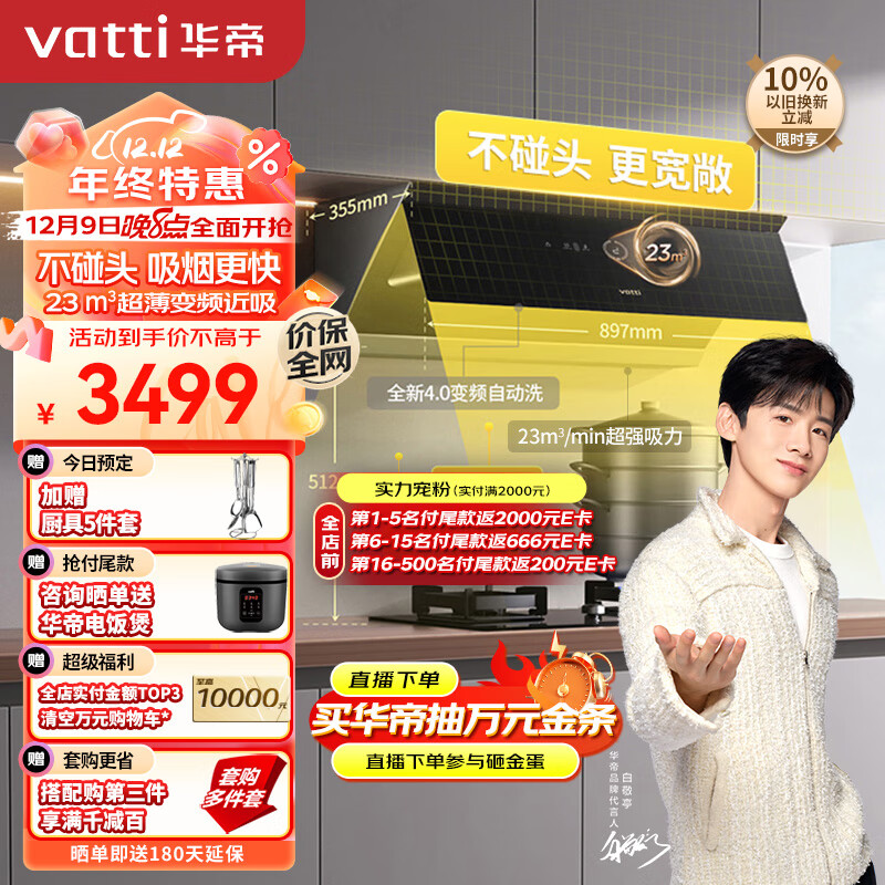 华帝(VATTI)抽油烟机家用超薄侧吸变频大吸力烟机燃气灶具烟灶套装23风量自动清洗空间大师i111A2·SE液化气价格:3498.00元!