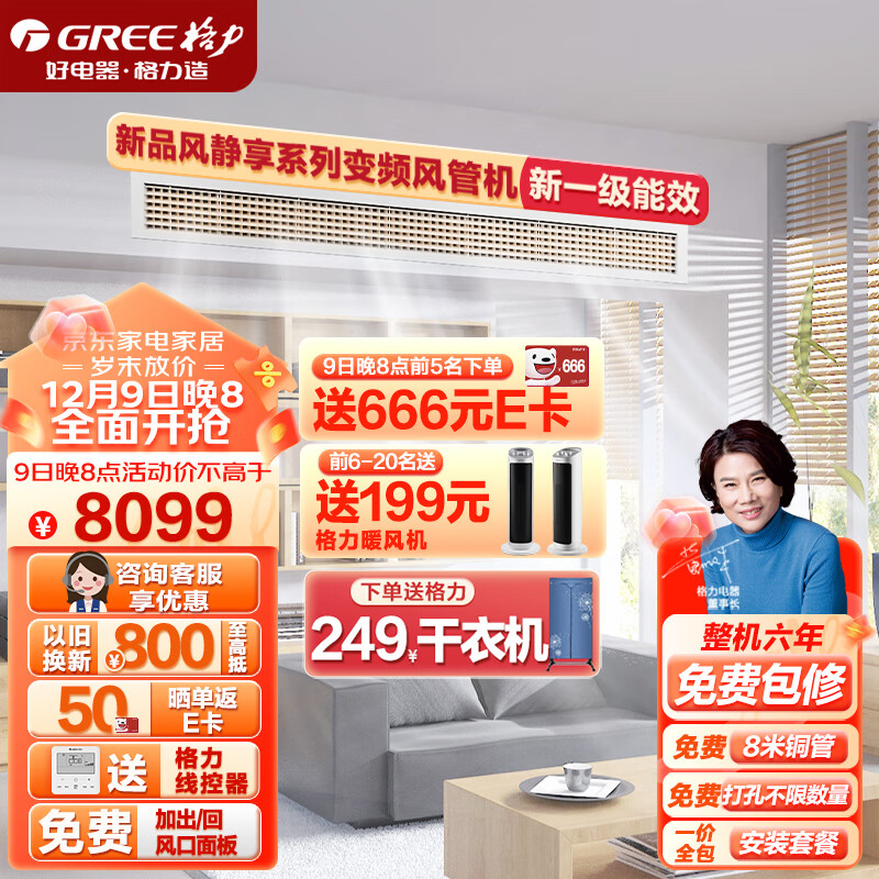 格力(GREE)中央空调 风管机一拖一K+ 风静享2匹家用嵌入式空调 1级能效冷暖FJR5Pd/Cb4Nh-N1京派(一价全包)价格:8099.00元!