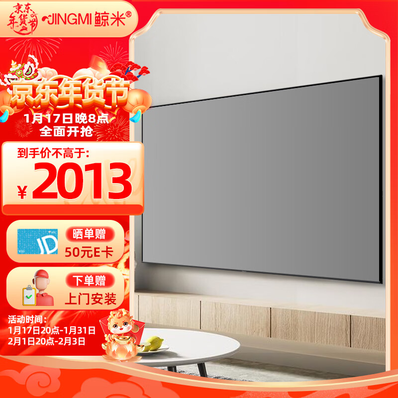 鲸米(JINGMI)投影幕布150英寸16:9超窄边画框幕布K3灰晶光学抗光屏幕家用投影仪幕布极米小米当贝爱普生等价格:2368.00元!