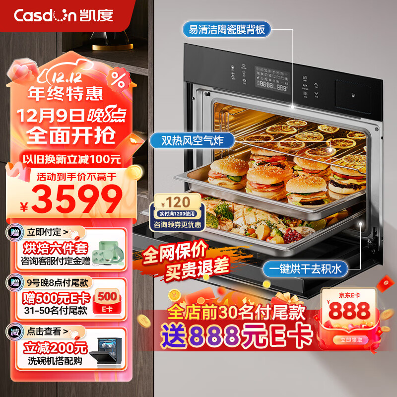 凯度(CASDON)56L蒸烤一体机嵌入式 双热风 蒸烤炸三合一蒸烤箱一体机烘焙蒸箱 烤箱SR5628DE11-GD Pro价格:3599.00元!