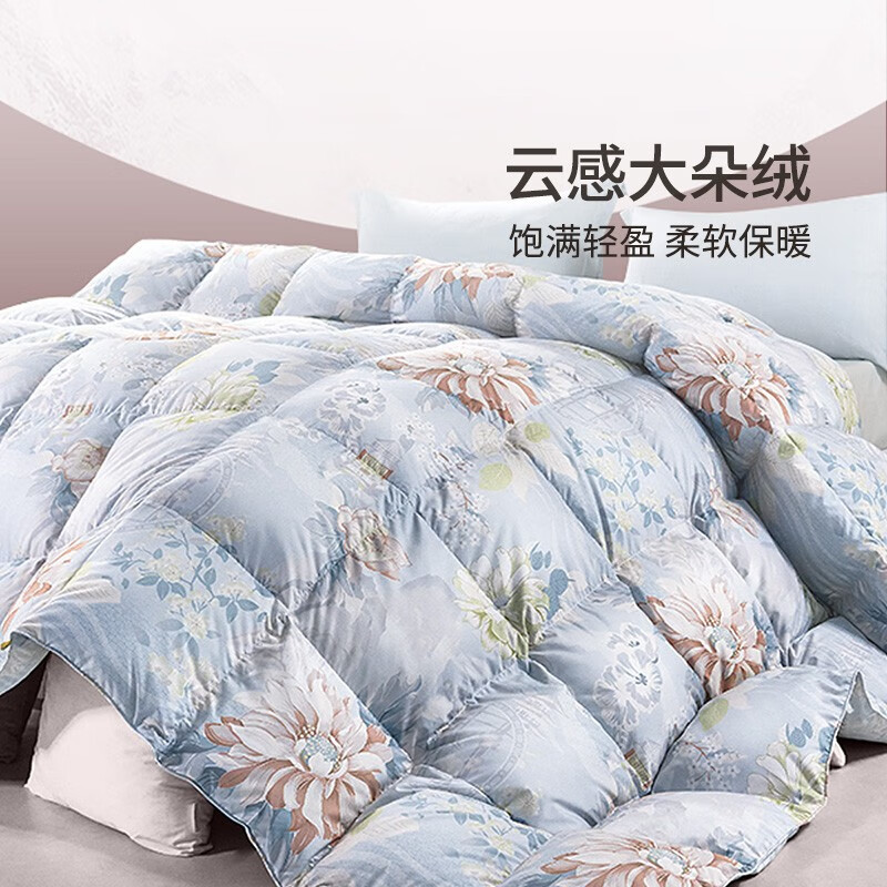 富安娜家纺 70%白鹅绒羽绒被芯 冬被 填充约800g-1200g 蓝色 【大朵白鹅绒+锁温保暖】冬厚被 1.8米床(230*229cm)价格:2198.00元!