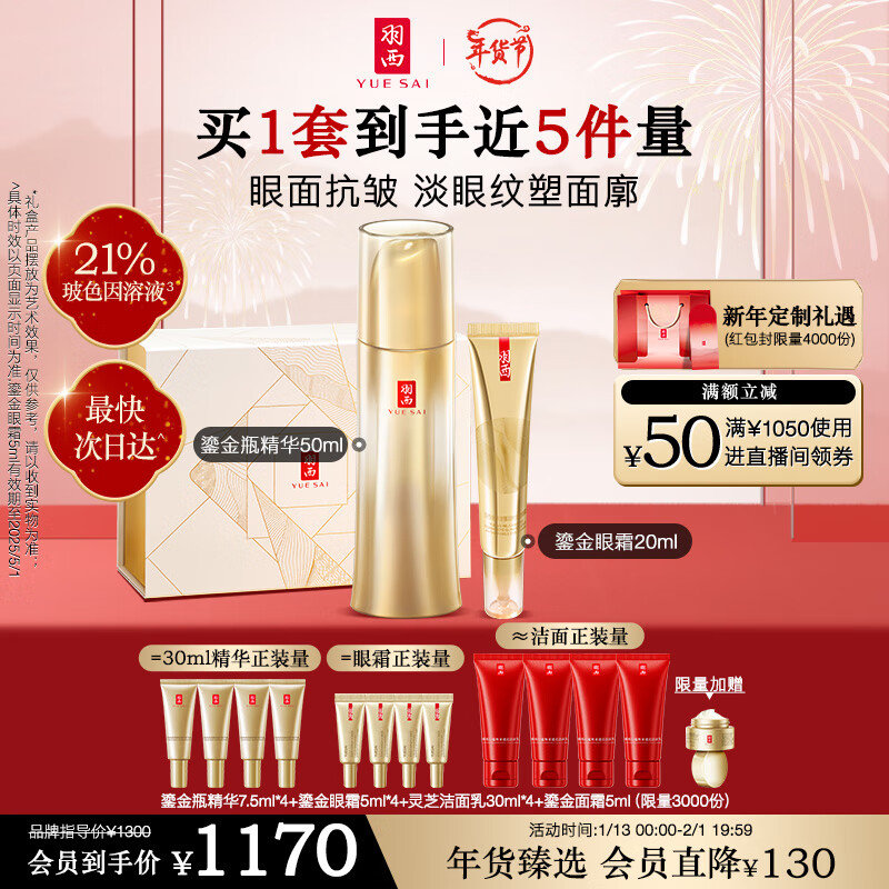 羽西鎏金套装(精华50ml+眼霜20ml)玻色因保湿淡化黑眼圈新年礼物女价格:1300.00元!