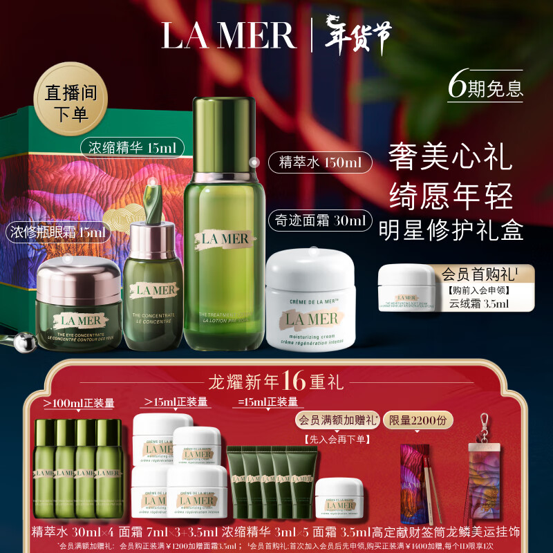 海蓝之谜(LA MER)明星修护套装(精萃水+精华+面霜+眼霜)护肤品化妆品新年生日礼物价格:6900.00元!