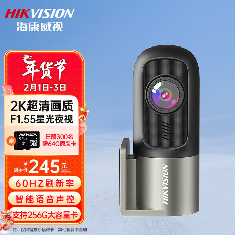 HIKVISION海康威视行车记录仪D1Pro 1440P高清星光夜视F1.55光圈语音声控价格:269.00元!