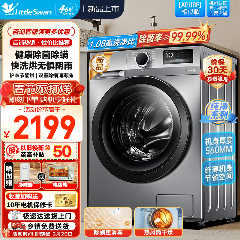 小天鹅(LittleSwan)滚筒洗衣机全自动 10公斤大容量洗烘一体 1.08高洗净比 除菌净螨以旧换新TD100YQ2价格:2169.00元!