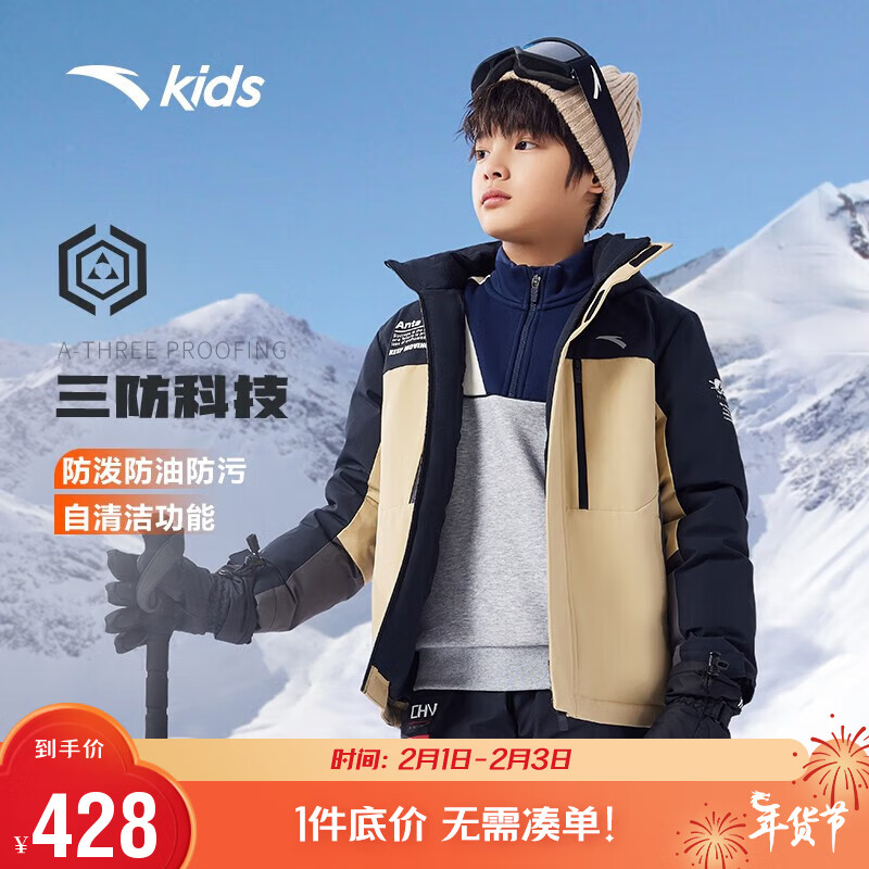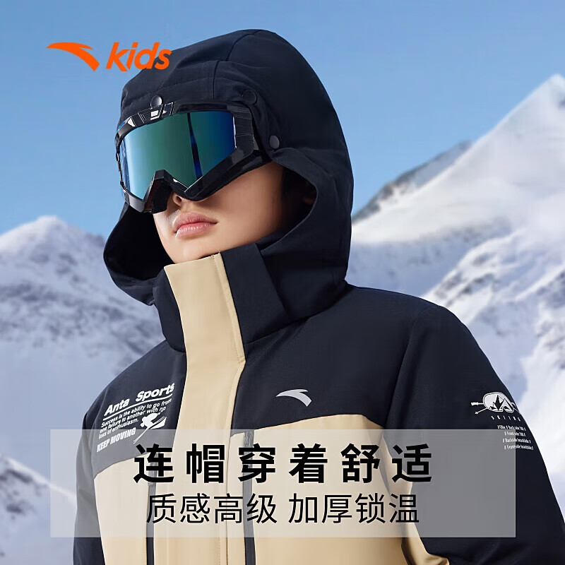 安踏儿童羽绒服男大童冬季加绒保暖热返滑雪眼镜款羽绒外套A352346906价格:428.00元!