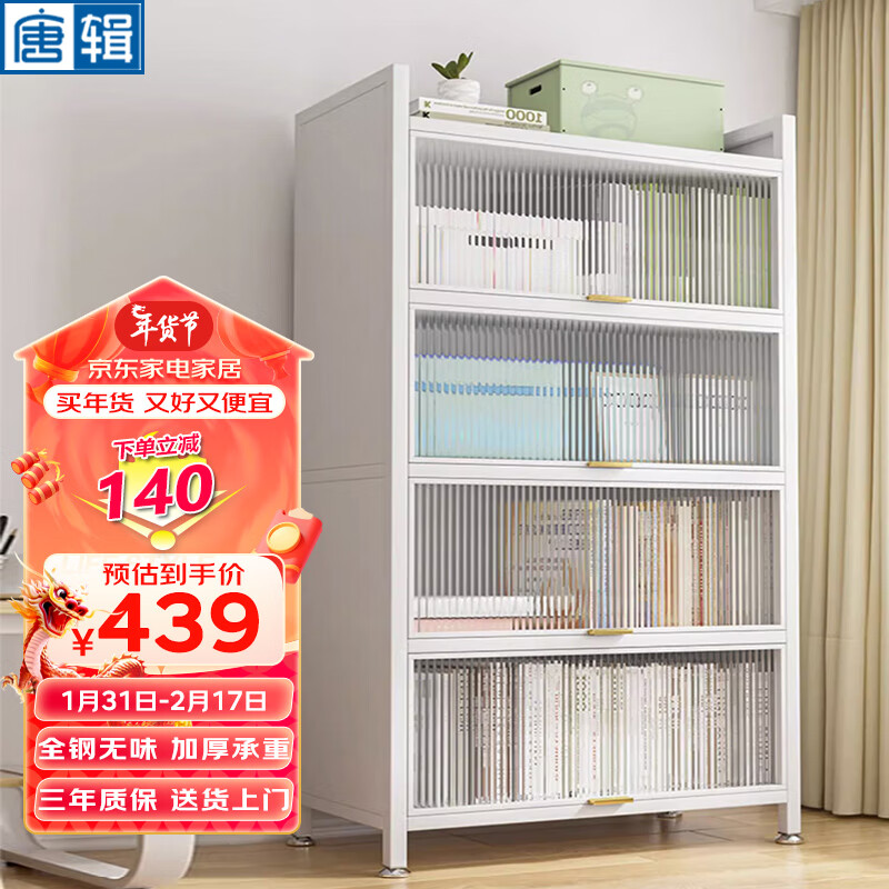 唐辑钢制书架书柜防尘落地多层带门铁艺书架置物架收纳储物柜五层长80价格:579.00元!