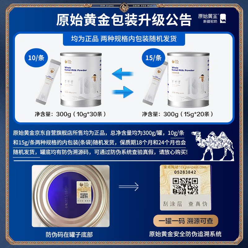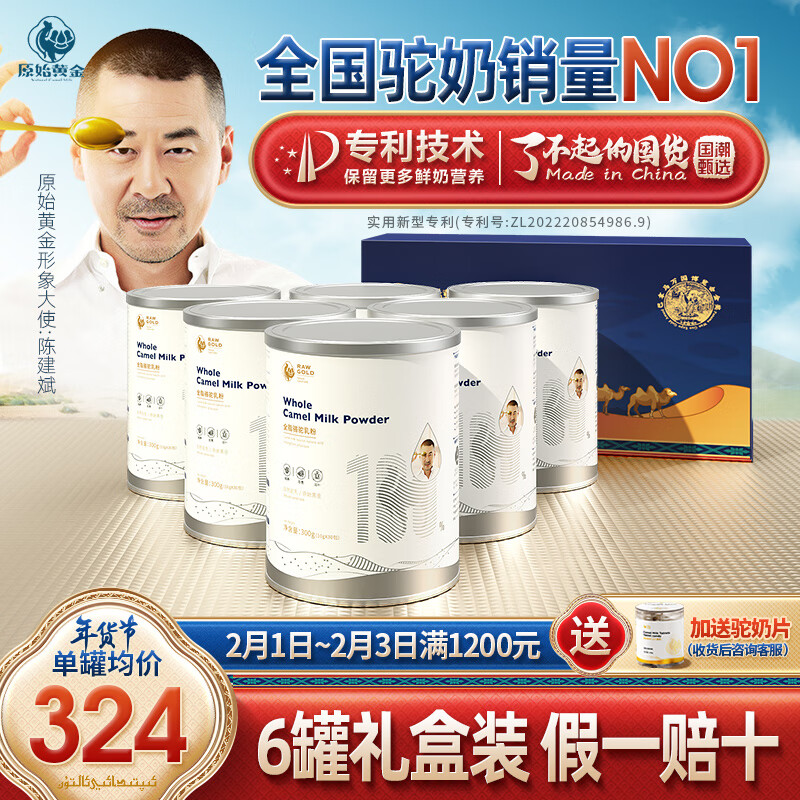 原始黄金骆驼奶粉新疆无蔗糖儿童中老年成人奶粉高钙纯驼乳粉礼盒300g*6罐价格:2288.00元!