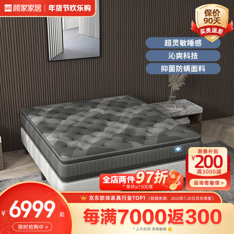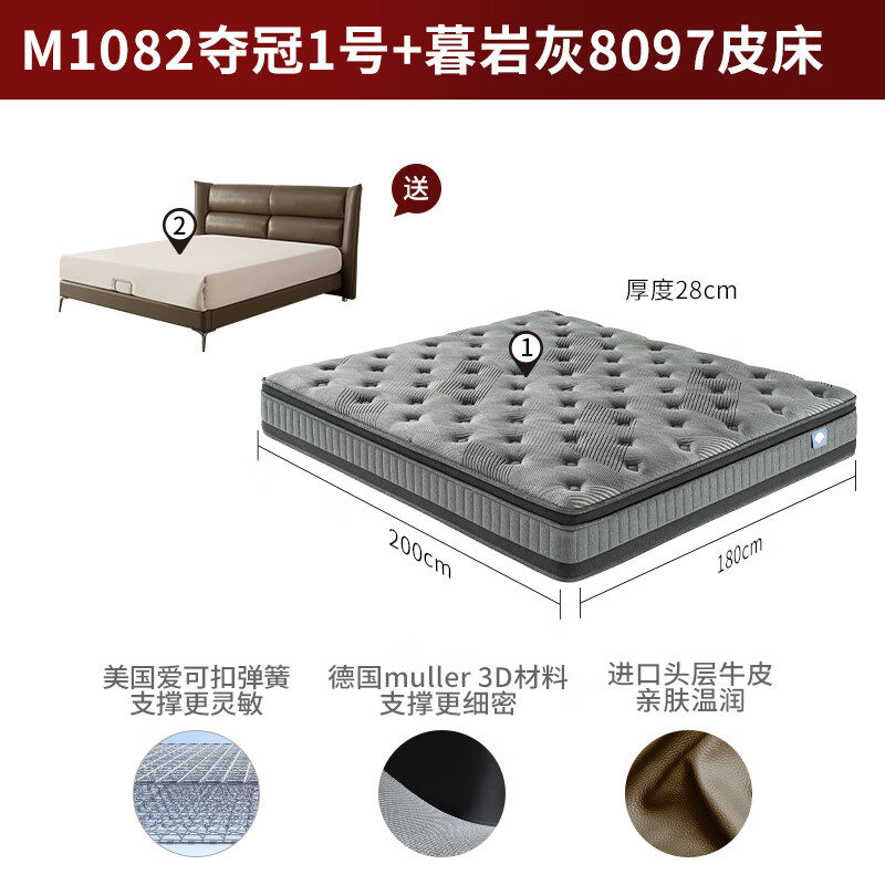顾家家居(KUKA)席梦思床垫弹簧床垫M1082夺冠1号垫+【暮烟灰】8097皮床 1.8米年后批发货价格:6999.00元!