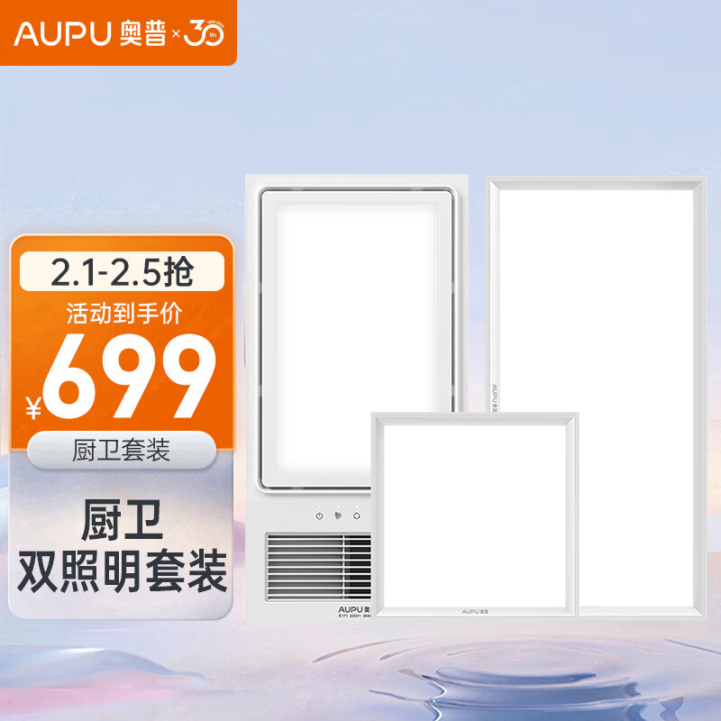 奥普(AUPU)浴霸E371风暖触控智能换气浴霸+长灯+方灯照明套装(附件形式)价格:999.00元!
