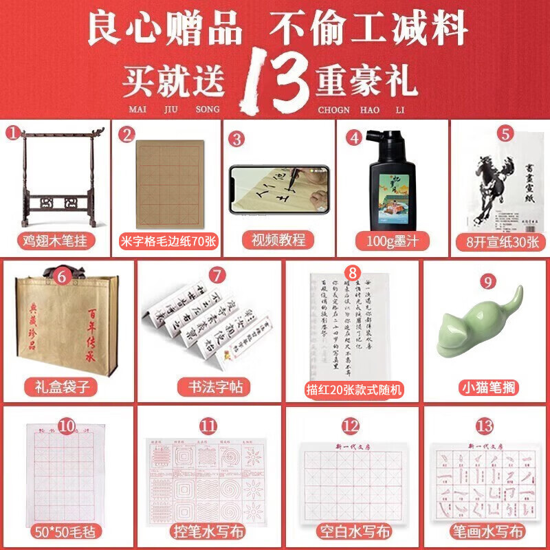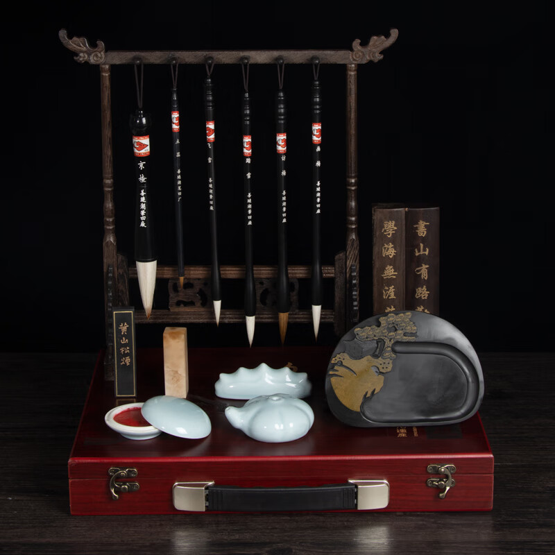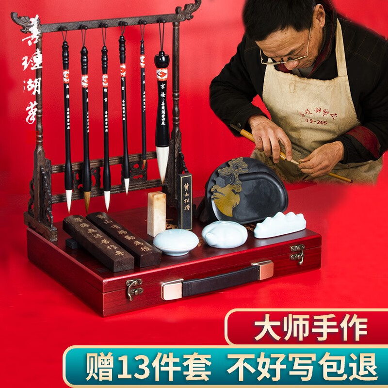 善琏湖笔 文房用品复古礼盒文房四宝套装笔墨纸砚成人初学毛笔斗笔砚台挂笔架镇尺书法工具初学者入门临摹 高档文房四宝礼盒套装价格:390.00元!