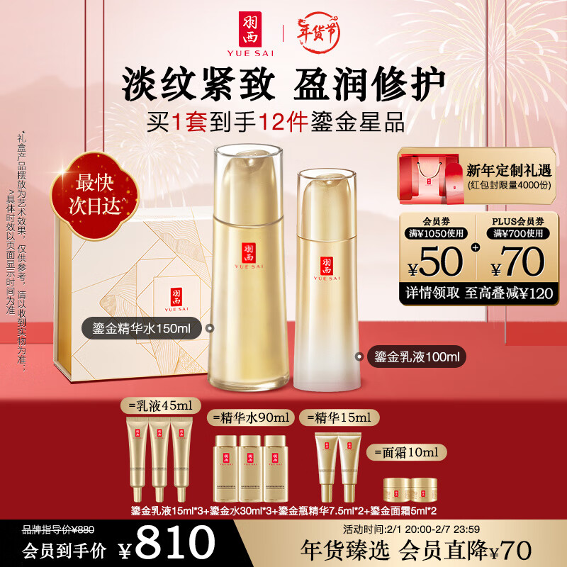 羽西鎏金套装(爽肤水150ml+乳液100ml)补水保湿护肤品礼盒年货节价格:880.00元!