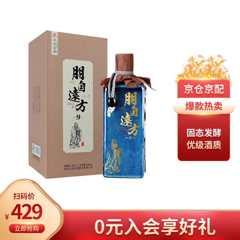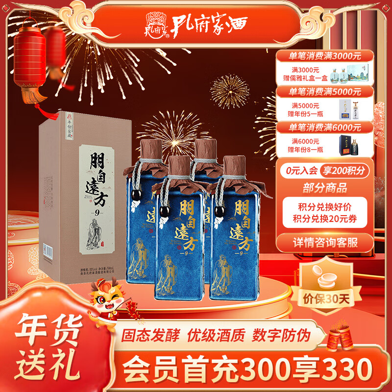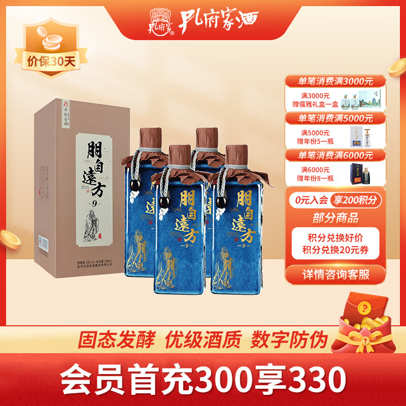 孔府家 酒 朋自远方9 浓香型白酒52度 500ml*4瓶 整箱装 送礼新老包装价格:1199.00元!
