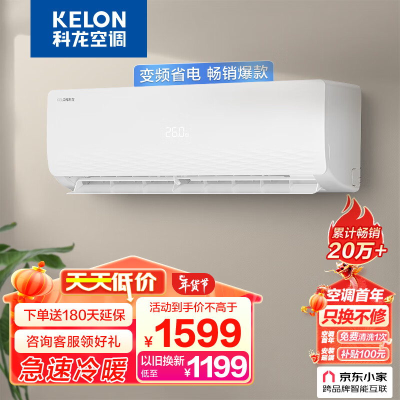 科龙(KELON)空调 大1匹 新三级能效 急速冷暖 变频节能 壁挂式挂机 京东小家 青春派 KFR-26GW/QTA3(1Q21)价格:1599.00元!
