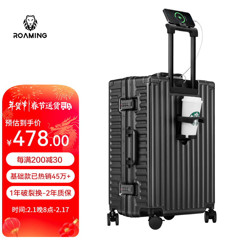 漫游5512行李箱拉杆箱大容量男女旅行箱包密码箱皮箱子24英寸黑色价格:578.00元!