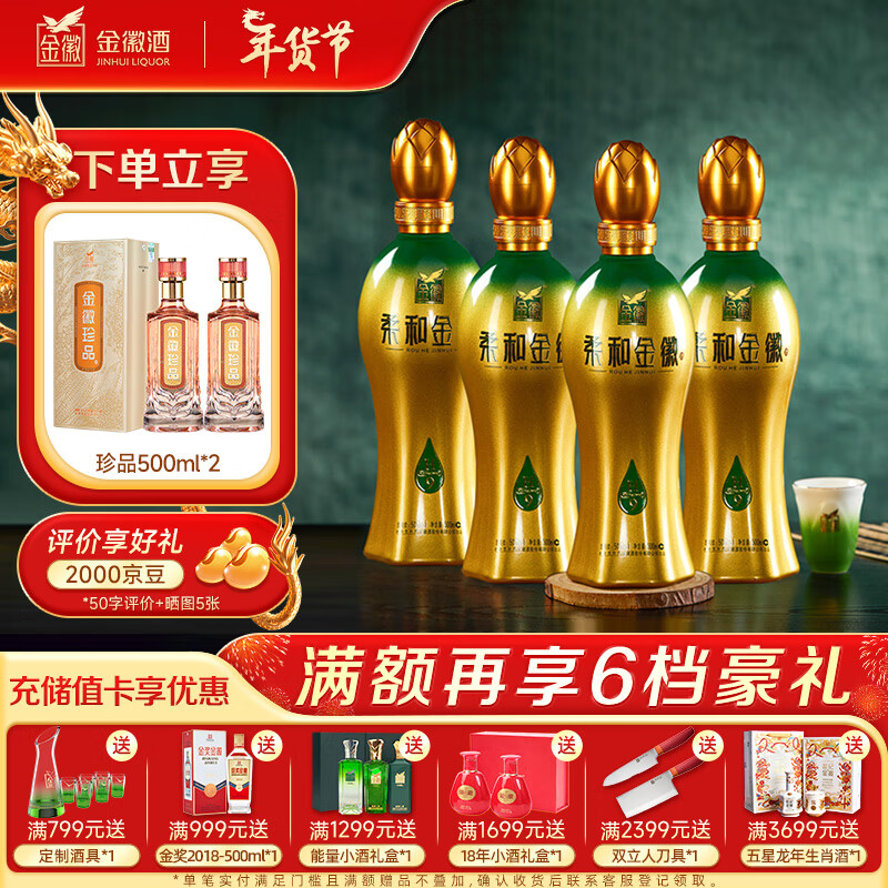 金徽 柔和H9 浓香型白酒 50度 500ml*4瓶 整箱装价格:1476.00元!