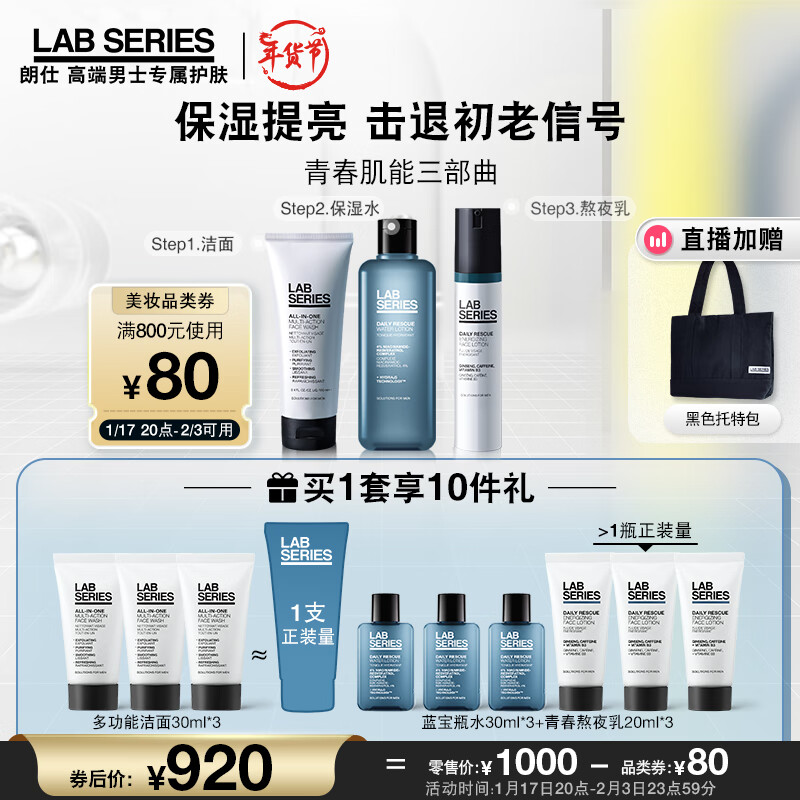 朗仕LAB青春肌能三部曲(洁面+爽肤水+乳)男士护肤套装情人节送礼物价格:1000.00元!