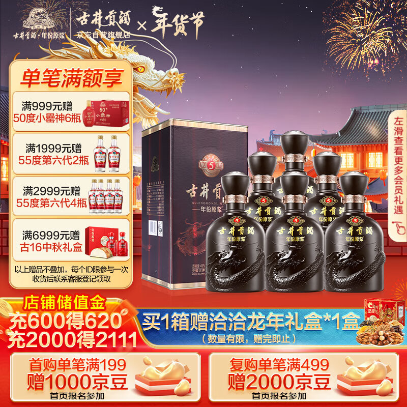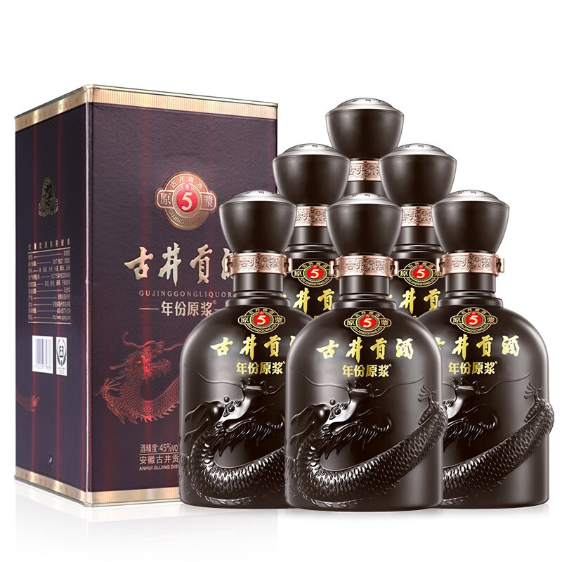 古井贡酒 年份原浆古5 浓香型白酒 45度500ml*6瓶 整箱装 过年送礼价格:981.00元!