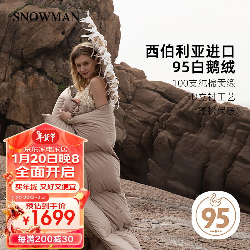 斯诺曼100支贡缎西伯利亚95%白鹅绒羽绒冬被 填充1050g200x230cm【卡】价格:2199.00元!