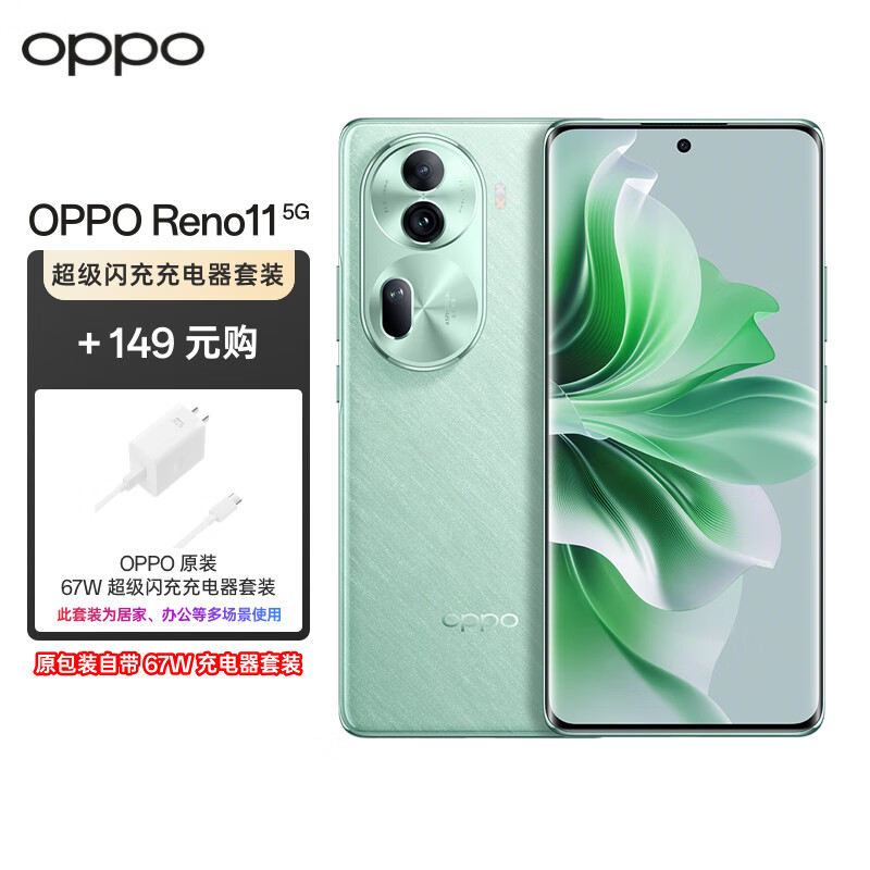 OPPO Reno11 12GB+256GB 萤石青 单反级人像三摄 天玑8200旗舰芯 5G手机【67W充电器备用套装】价格:2748.00元!