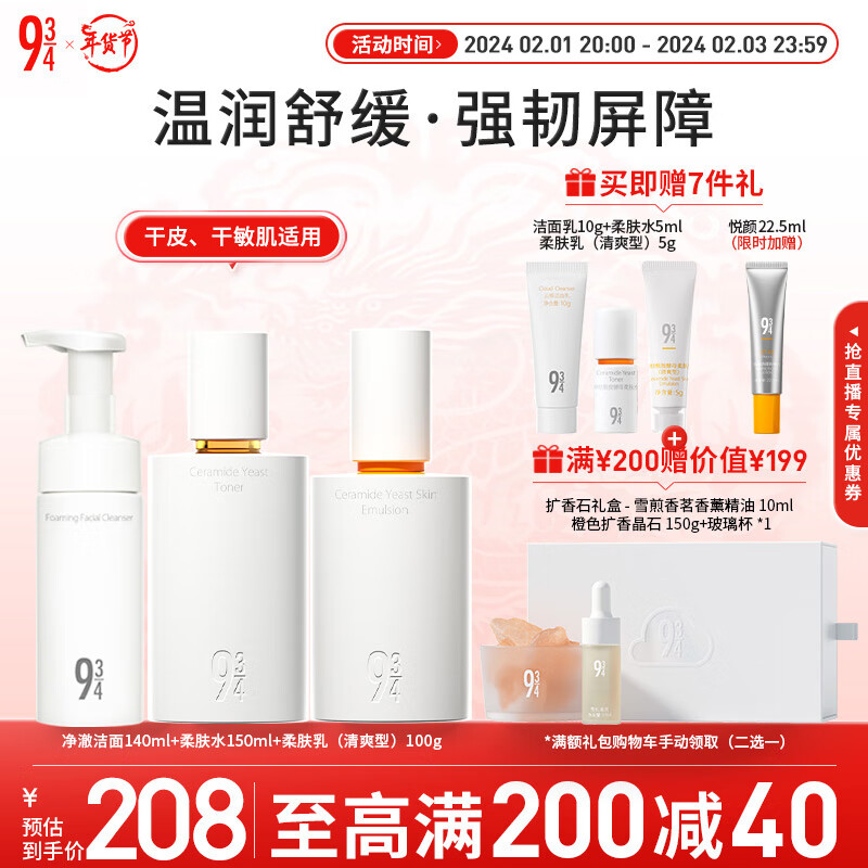 934神经酰胺酵母柔肤磨皮水乳液洗面奶补水保湿护肤套装943男女适用 【磨皮水乳】慕斯+柔肤水+清爽乳价格:238.00元!