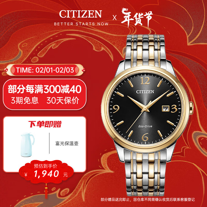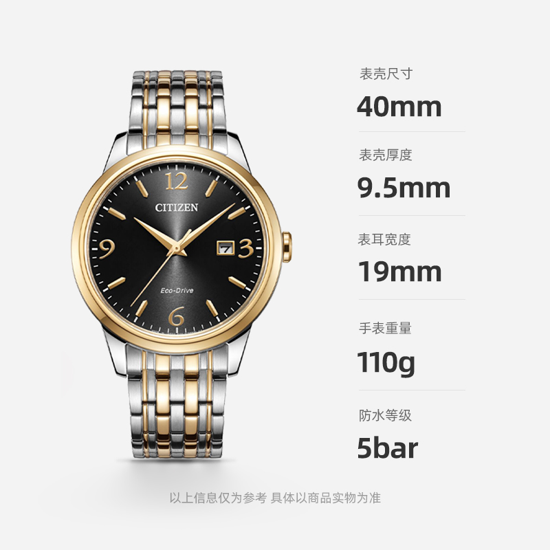 西铁城(CITIZEN)手表男日韩表光动能黑盘日期显示钢带学生送礼物男友BM7304-59E价格:2160.00元!