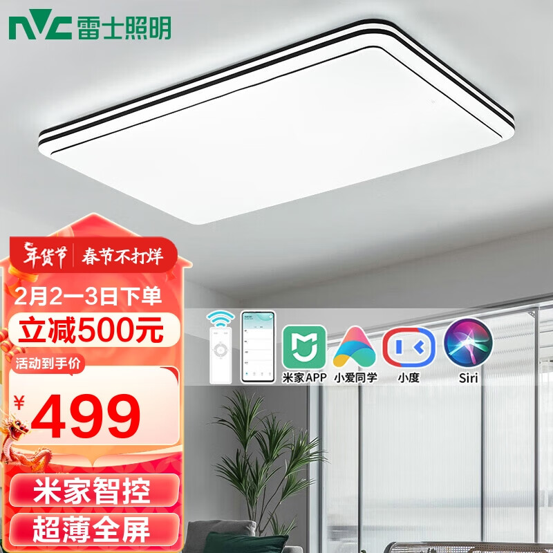 雷士(NVC)LED吸顶灯 智控雅黑客厅灯双层发光灯饰现代简约卧室灯具套餐价格:999.00元!