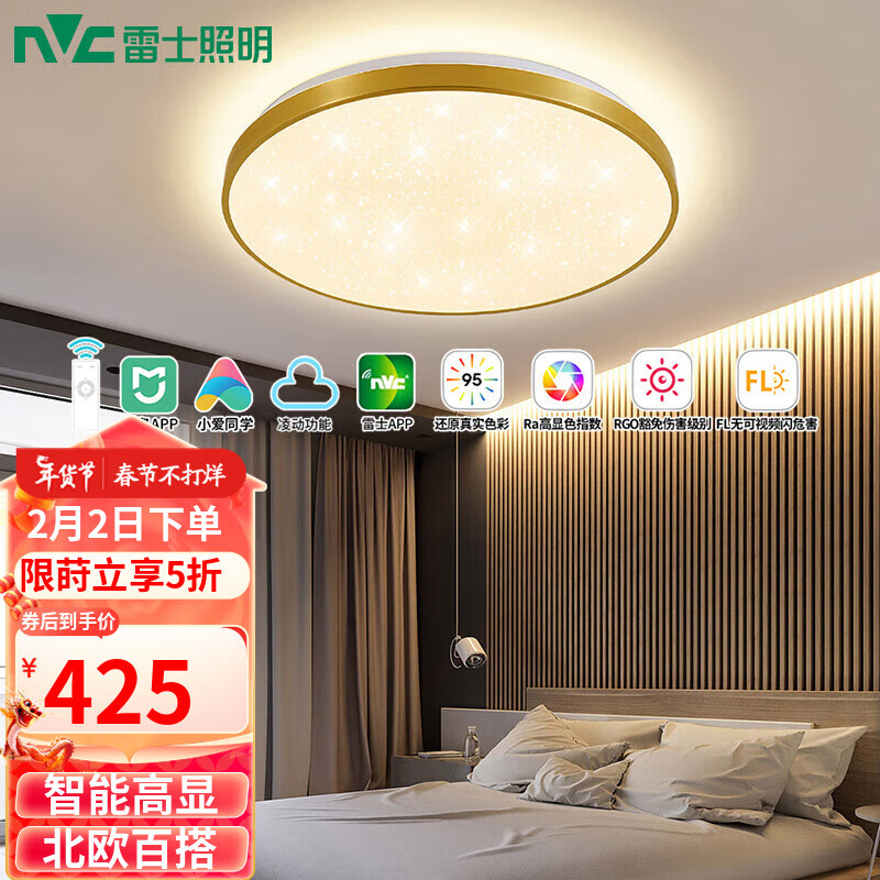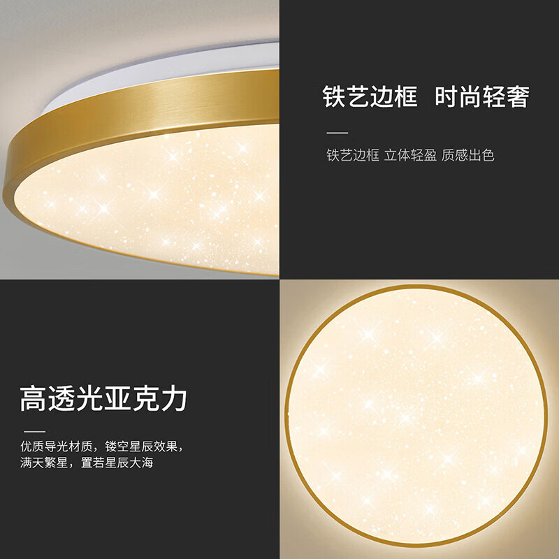 雷士(NVC)LED吸顶灯轻奢现代风格满天星北欧智能高显卧室圆灯WHXD36W/G-03价格:949.00元!