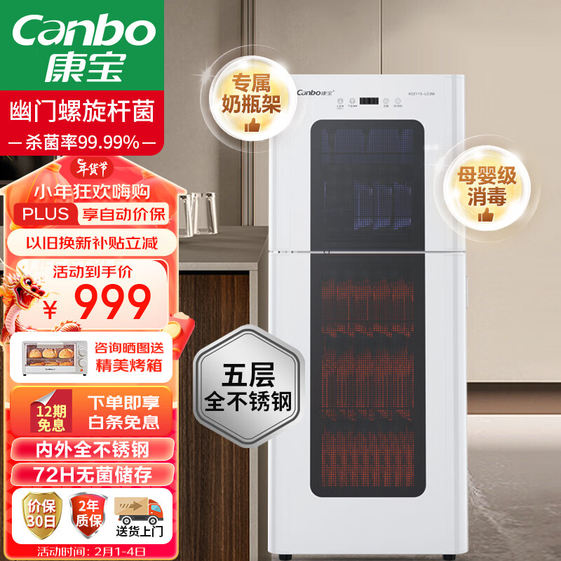 康宝(Canbo)消毒柜家用 不锈钢 立式 大容量母婴儿奶瓶厨房碗筷小型高温二热风消毒柜碗柜XDZ115-LC3M白色价格:999.00元!