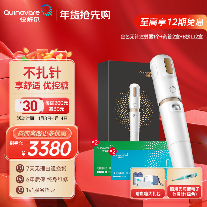 快舒尔无针头胰岛素注射器无痛注射笔免扎针糖尿病人家用医用无针注射器 标配版套餐(2+2金色B版)价格:4780.00元!