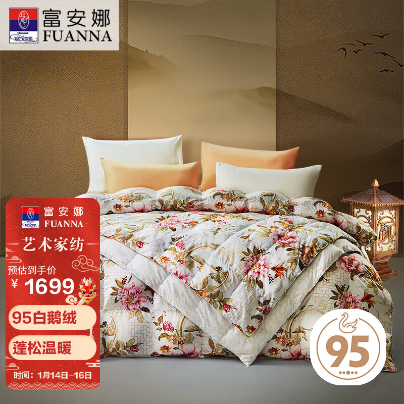 富安娜 月上海 95%白鹅绒羽绒被二合一子母被加厚被800g填充152*210cm灰价格:2999.00元!