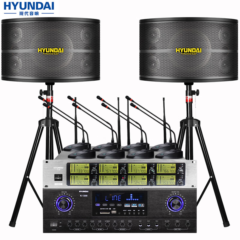 HYUNDAI现代专业会议室音响设备套装蓝牙功放培训教室舞蹈室家庭KTV背景音乐系统壁挂音箱 【两音响/八鹅颈】会议音响套装(50-120平)价格:3999.00元!
