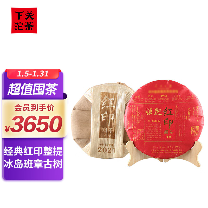 下关沱茶普洱生茶 2021年班章冰岛古树红印整提装357g*7饼 收藏年货送礼价格:8750.00元!