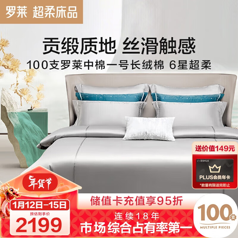 1、罗莱家纺四件套纯棉提花100支30%长绒棉全棉床单被套双人酒店风礼盒装麦林格灰1.8米床颜色是我喜欢的材质舒服