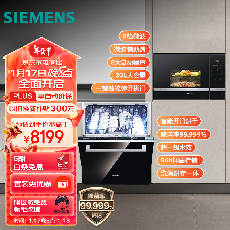 西门子14套大容量嵌入式家用洗碗机智能开门烘干 嵌入式微波炉组合套装 636Pro(含黑门板)+BE525价格:8199.00元!