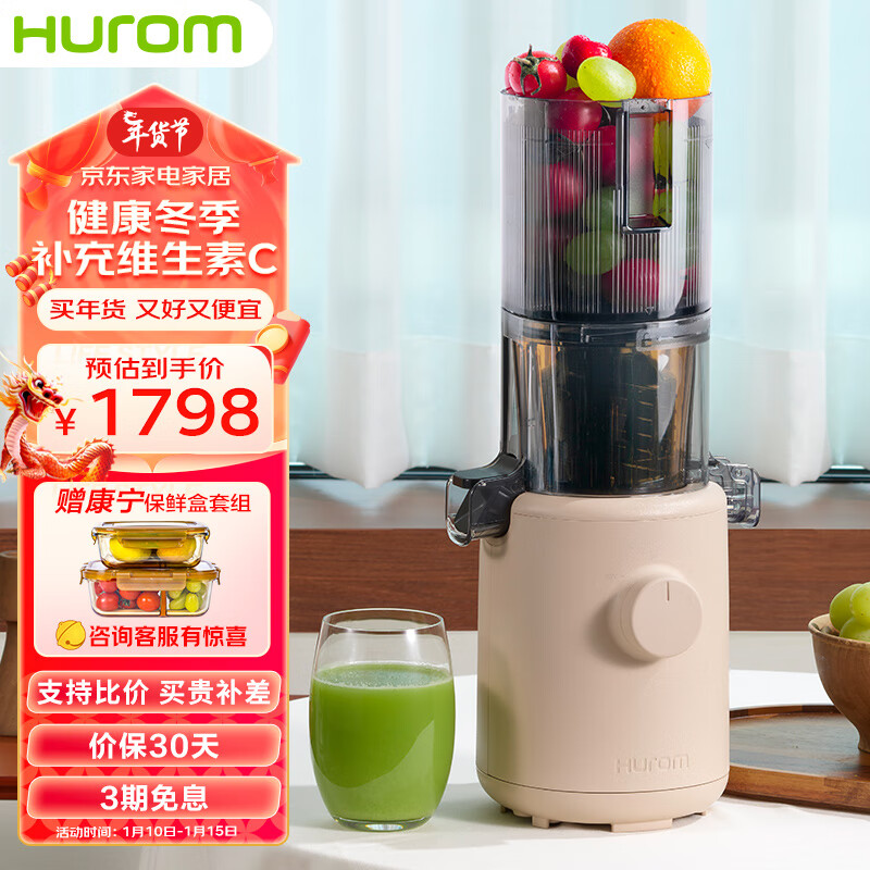 惠人 (HUROM)原汁机创新无网易清洗多功能大口径家用低速榨汁机 原装进口 H310A-BIC04(BG)价格:1798.00元!