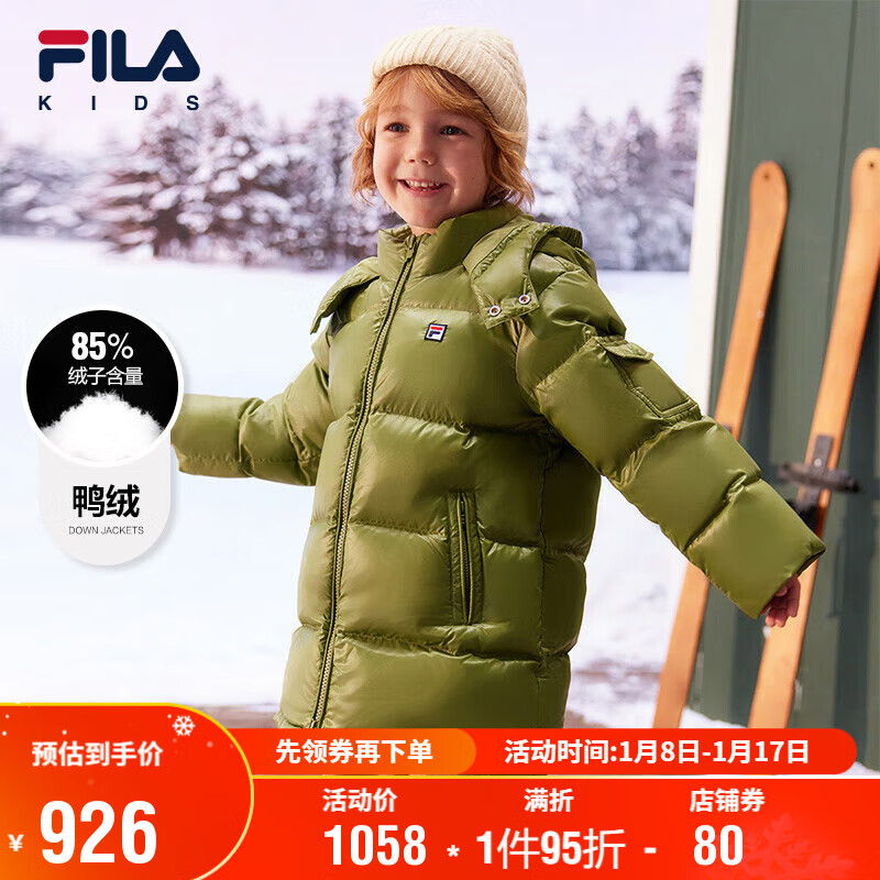 FILA斐乐童装外套2023秋冬中大童男童女童亮面中长款羽绒服价格:1058.00元!
