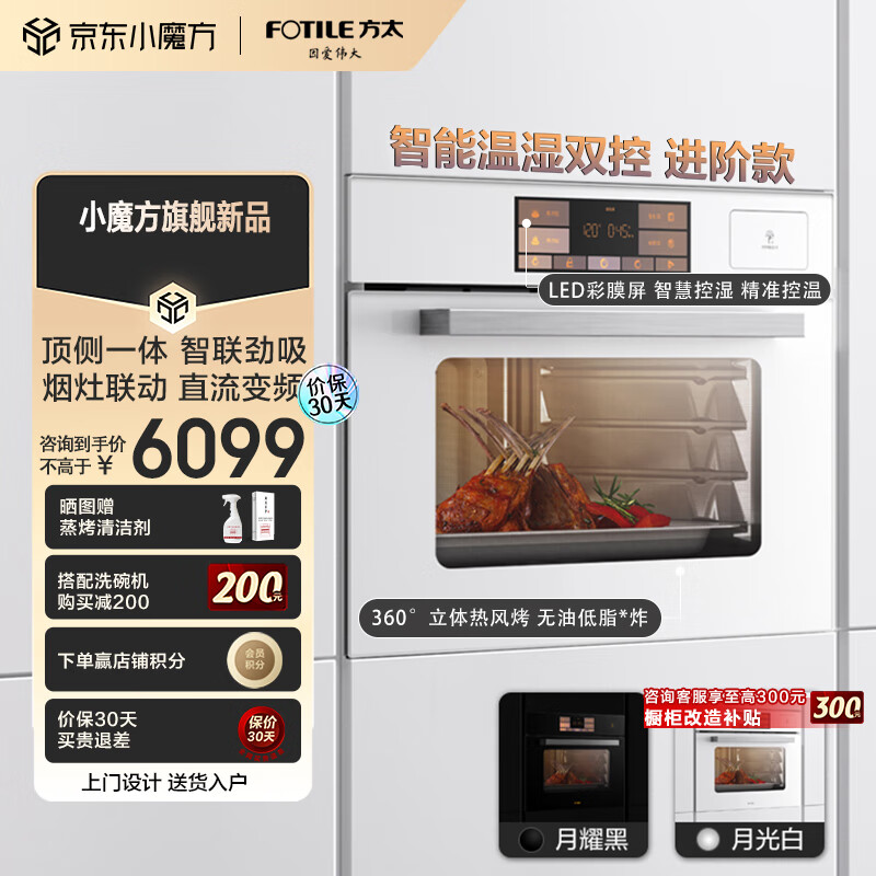 方太(FOTILE)彩膜款蒸烤箱一体机嵌入式家用蒸烤炖炸四合一 手机智控55L 蒸箱烤箱月光白ZK50-EF1.i-w价格:6099.00元!