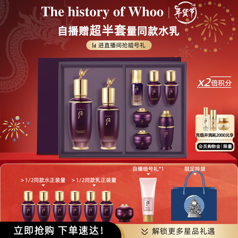 后Whoo凝颜赋活系列水乳礼盒8件套紧致抗皱护肤品套装新年礼物价格:3400.00元!