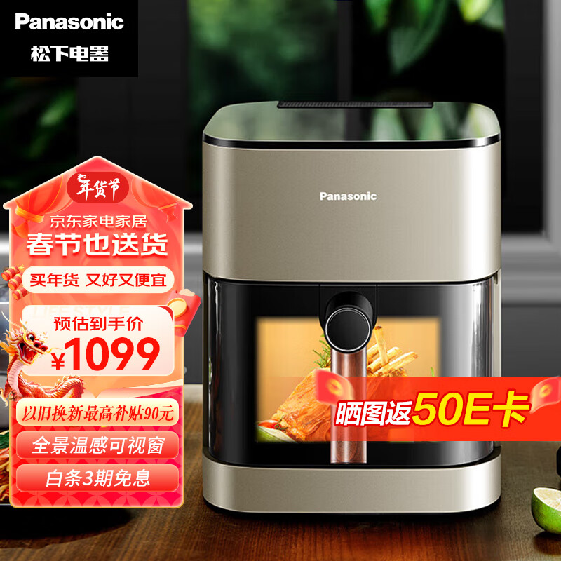 松下(Panasonic)多功能全景可视窗 家用全自动无油大容量 无需翻面 空气炸锅 NF-HC500-N价格:799.00元!