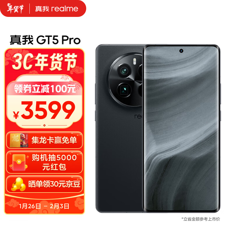 realme真我GT5 Pro第三代骁龙8旗舰芯 IMX890潜望长焦 4500nit无双屏 5G游戏旗舰手机 16GB+256GB星夜价格:3699.00元!