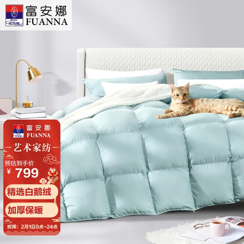 富安娜 星宇恋 50%白鹅绒羽绒被 加厚被 1500g填充 230*229cm 绿色价格:1399.00元!