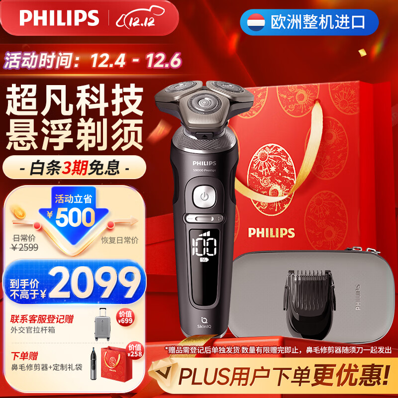 飞利浦(PHILIPS)男士电动剃须刀蜂巢奢享SP9系 SkinIQ科技刮胡刀 欧洲原装进口 【礼物送男友送爸爸】SP9830/26价格:2099.00元!