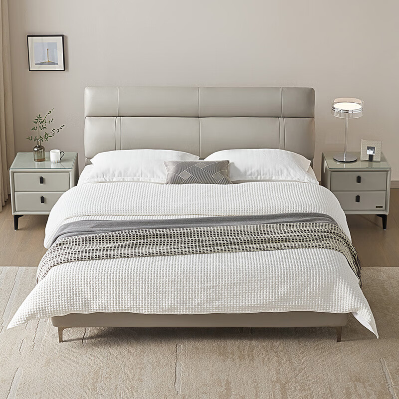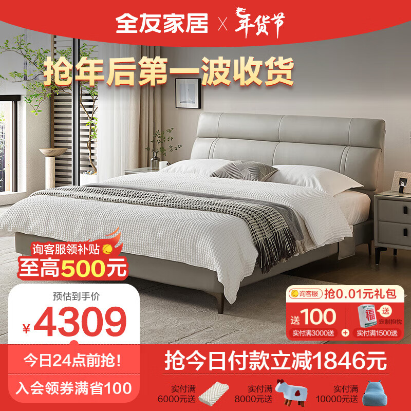 全友家居 进口头层皮皮床简约1.8米双人床护腰软床卧室家具105251A价格:5455.70元!