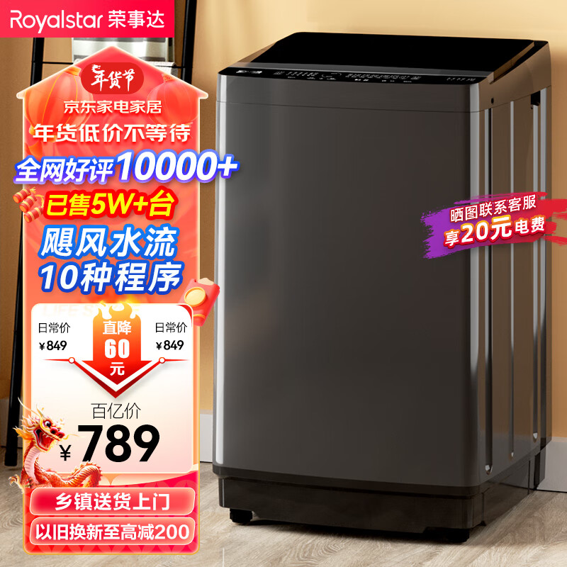 荣事达(Royalstar) 洗衣机 10公斤全自动波轮大容量家用脱水机甩干机洗衣机 以旧换新 深灰色 ERVP191020T价格:789.00元!