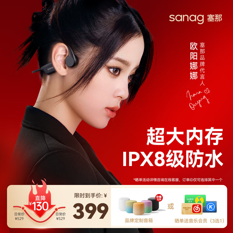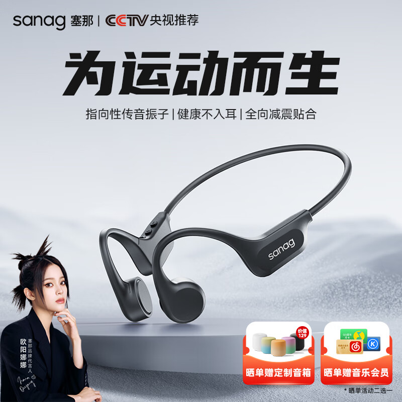 SANAG塞那【央视甄选丨QQ音乐认证】B60骨传导蓝牙耳机 开放式运动耳机 跑步骑行不入耳游泳耳机 32G价格:459.00元!