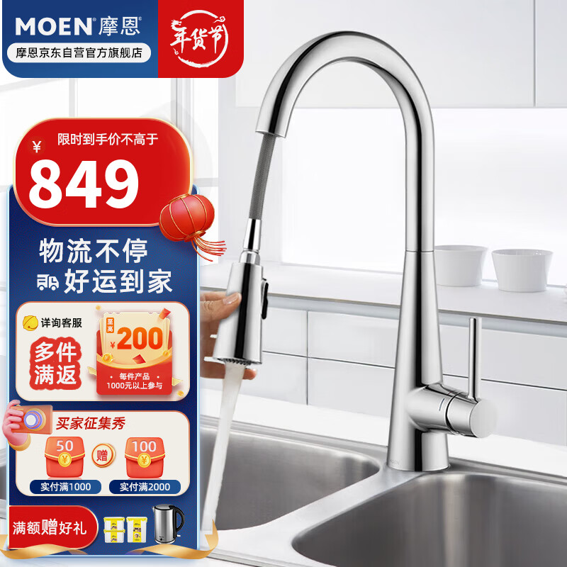 摩恩(MOEN)厨房水龙头 可抽拉旋转水槽洗菜盆洗碗盆冷热水龙头 净铅龙头价格:949.00元!